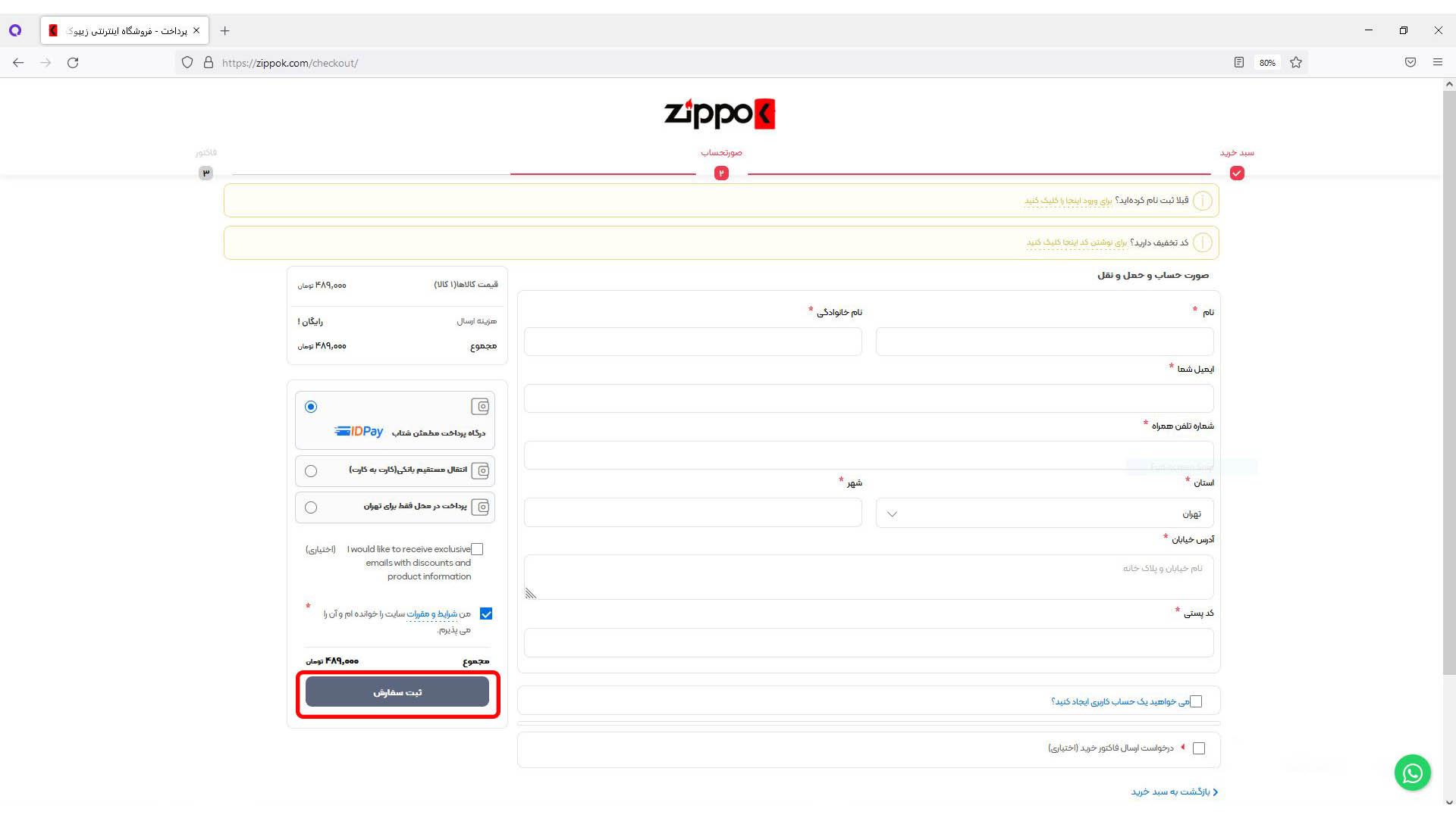 پس از تکمیل اطلاعات خواسته شده به درگاه پرداخت انتقال داده میشوید.