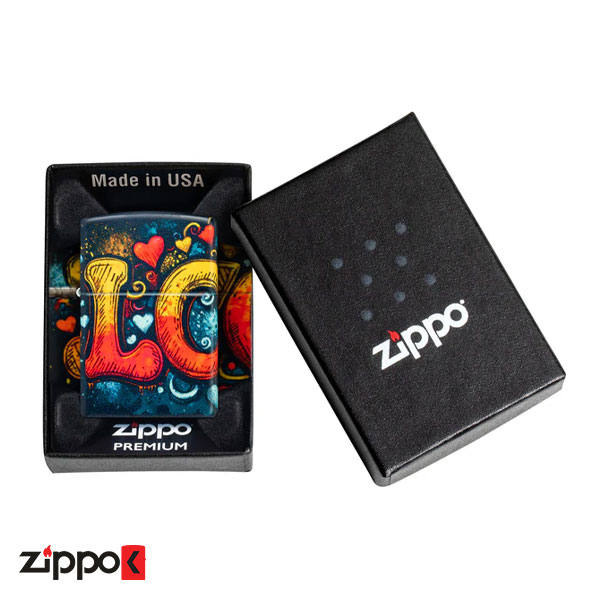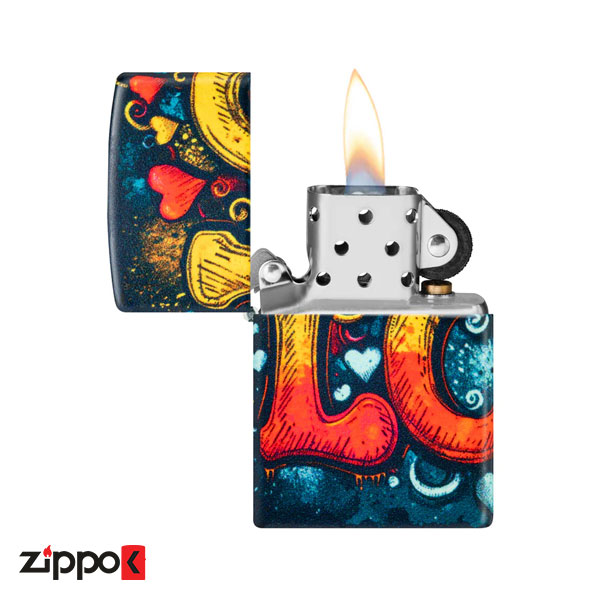 در زیپو 46283 با الهام از گرافیتی و دیوارنگاریهای شهری، کلمه “LOVE” بهصورت همهجانبه روی بدنه چاپ شده است.