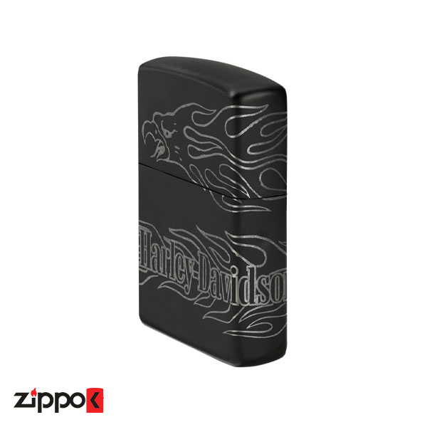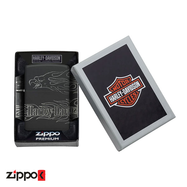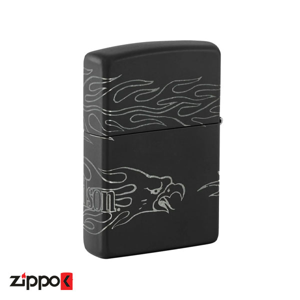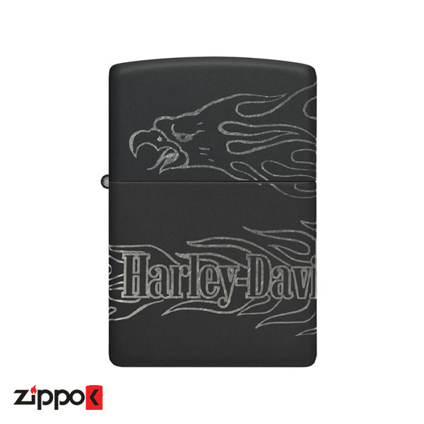 فندک زیپو اصل 46310 | Zippo Harley Davidson Eagle Flame🔥 این فندک زیپو با روکش مشکی مات دارای یک عقاب شعلهور حکاکی شده با لیزر و نوشته Harley Davidson برای ایجاد حسی از سبک وحشی، سرعت و اصالت دو برند آمریکایی است و این طراحی زیبا تمام سطح بدنه فندک زیپو 46310 را پوشش میدهد.