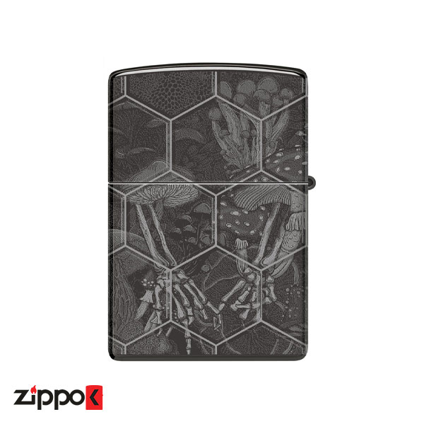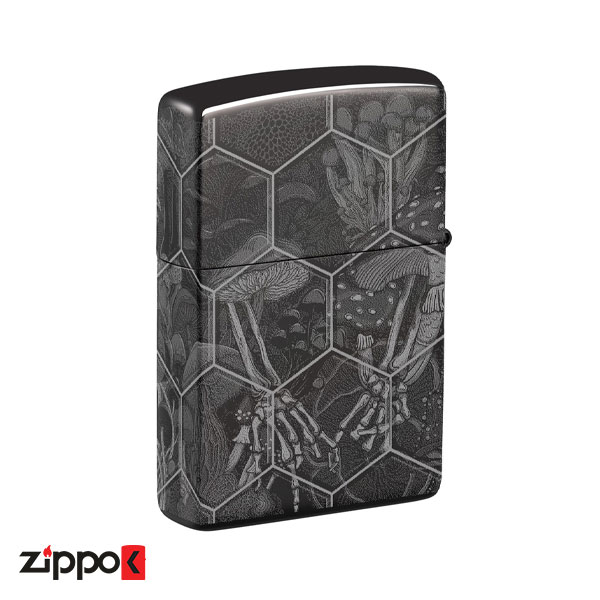 فندک زیپو اصل 46425 | Zippo Mushroom Skulls Design از سری بدنه کلاسیک با روکش مشکی براق آبنوسی(Ebony) زیپوست. طراحان از تکنیک چاپ 360 درجه برای Zippo 46425 استفاده کردهاند.