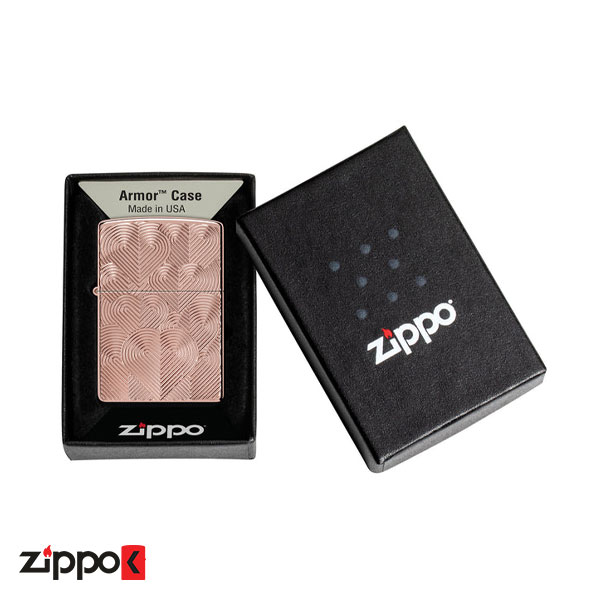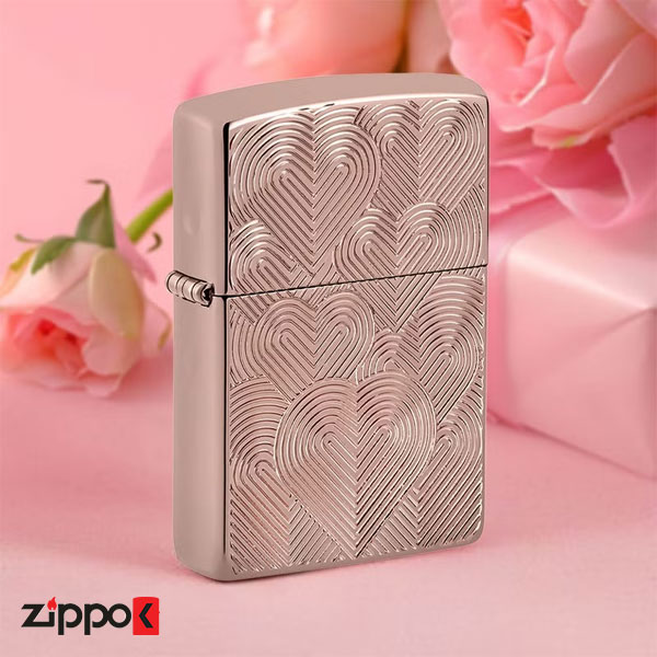 فندک زیپو اصل 48919 | Zippo Armor Hearts Design از سری بدنه آرمورکیس (Armor Case) با روکش رزگلد براق (High Polish) زیپوست. از سری Armor یعنی بدنه ضخیمتر (حدود ۱٫۵ برابر ضخامت بدنه استاندارد) است.