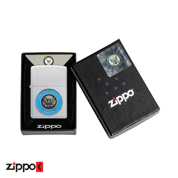 فندک زیپو اصل 48975 | Zippo United States Navy Design از سری کلاسیک با روکش کروم (Satin Chrome) زیپوست.
