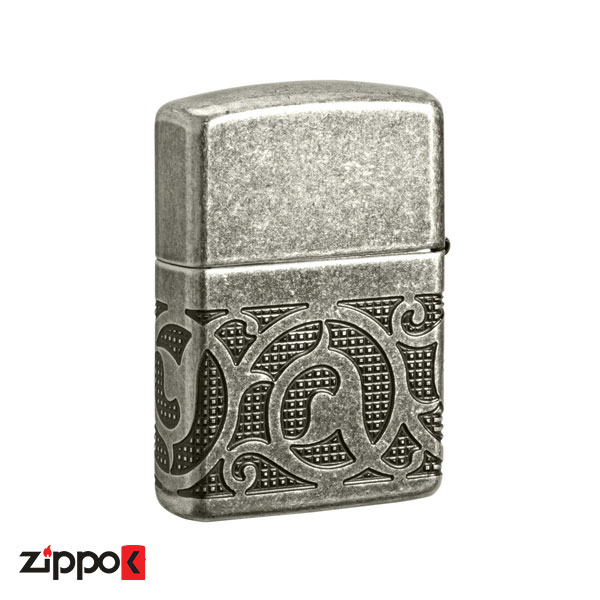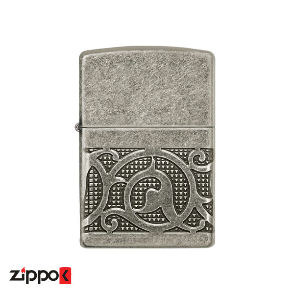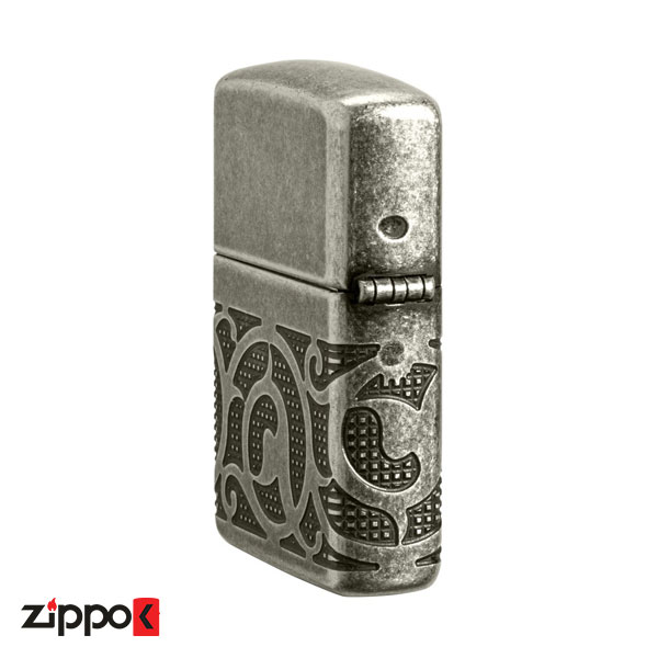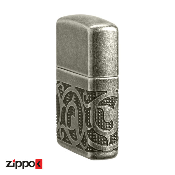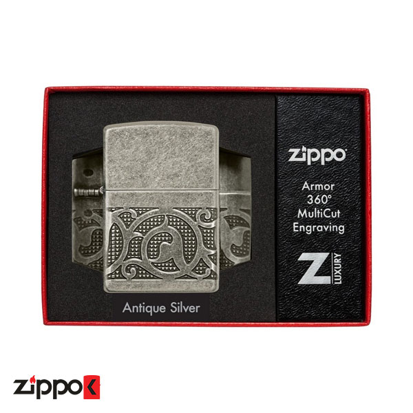 فندک زیپو اصل 49290 | Zippo Antique Armor Pattern Design از سری بدنه آرمورکیس با روکش آنتیک(Antique) نقره‌ای زیپوست. طراحان از تکنیک حکاکی مولتی کات(Multicut360) استفاده کرده‌اند. طراحی خاص الگوی «MultiCut» با نقش و نگار با الهام از سبک میدِیوِرال (medieval inspired) دارد.