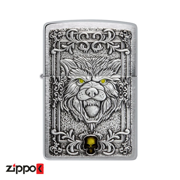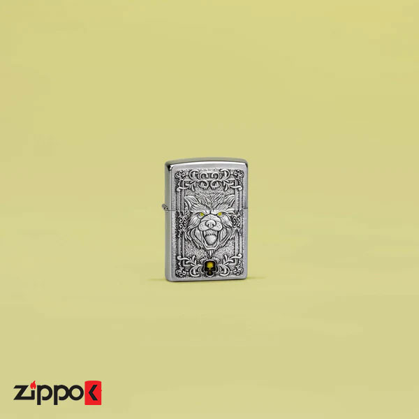 فندک زیپو اصل Zippo Wolf Emblem Design | 48690 از سری کلاسیک با روکش کروم برس خورده (Brushed Chrome) زیپوست.